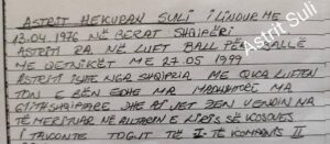 Deklarata e Astrit Sulit e shkruar, më 22 prill 1999 në Qendrën e Rekrutimit në Kukës