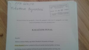 Flasifikimi i dokumentit zyrtar nga Agim Kurmehaj në përpjekje për ta mbrojtur veprimtarinë kriminale të Mehmet Mulajt. Këtë falsifikim nga ana e tij e vërteton IPK, ndërkohë IPK vërteton se dklaratën në emër të Mehmet Mulajt e ka diktuar në tërësi dhe nënshkruar polici Kosovë Avdylaj. Këtë dokument zyrtar si provë të falsifikimit, gjykata dhe gjyqtari Gani Rugova refuzonin ta ofronin në kuadër të shkresave të lëndës. Kjo kishte qenë duke u mbajtur peng te referenti Fadil Avdylaj me urdhër të policit Kosovë Avdylaj që të mos vërtetohet falsfikimi i hapur.