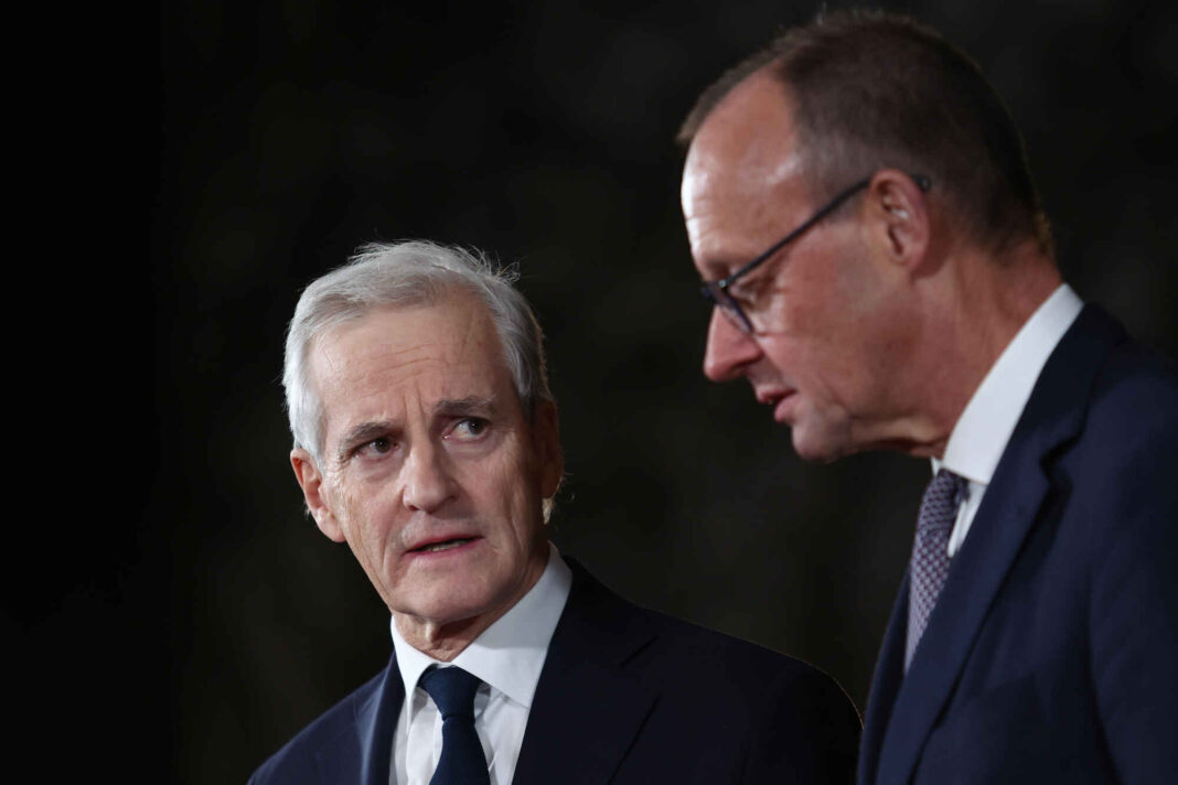 Kancelari gjerman Friedrich Merz mirëpret kryeministrin norvegjez Jonas Gahr Store në Kancelari në Berlin, Gjermani, të hënën, 15 dhjetor 2025. (Foto AP/Maryam Majd)