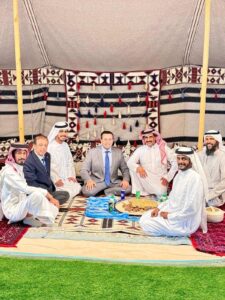 Ambasadori Nasufoski ka theksuar rëndësinë e krijimit të partneriteteve afatgjata dhe shkëmbimit të përvojave mes institucioneve dhe kompanive, duke hapur mundësi të reja investimi dhe bashkëpunimi në projekte të mëdha infrastrukturore, energjetike dhe teknologjike. Vizita e tij në rajon vlerësohet si një hap i rëndësishëm drejt forcimit të marrëdhënieve ekonomike dhe strategjike me vendet e Gjirit, duke krijuar perspektiva të reja për zhvillim, inovacion dhe rritje të bashkëpunimit ndërkombëtar. Mjafton ta shikojmë këto foto të rralla dhe disa nga pamjet e vizitës për të kuptuar domethënien dhe peshën e saj. Ambasadori Avni Nasufoski shihet në një ambient tradicional mikpritës, i rrethuar nga figura të respektuara lokale, duke reflektuar nivelin e lartë të respektit dhe mirëpritjes që i është rezervuar gjatë qëndrimit të tij në Dubai, Emiratet e Bashkuara Arabe, dhe Arabinë Saudite. Këto pamje dëshmojnë jo vetëm protokollin diplomatik, por edhe hapjen e dyerve për partneritete strategjike në fusha kyçe si energjia dhe teknologjitë infrastrukturore. Ambasadori shoqërohet në këtë vizitë nga drejtori i tij, z. Adel Bouabidi, njëherësh përfaqësues i vendeve të Gjirit dhe i vendeve arabe të Afrikës dhe Amerikës së Jugut.