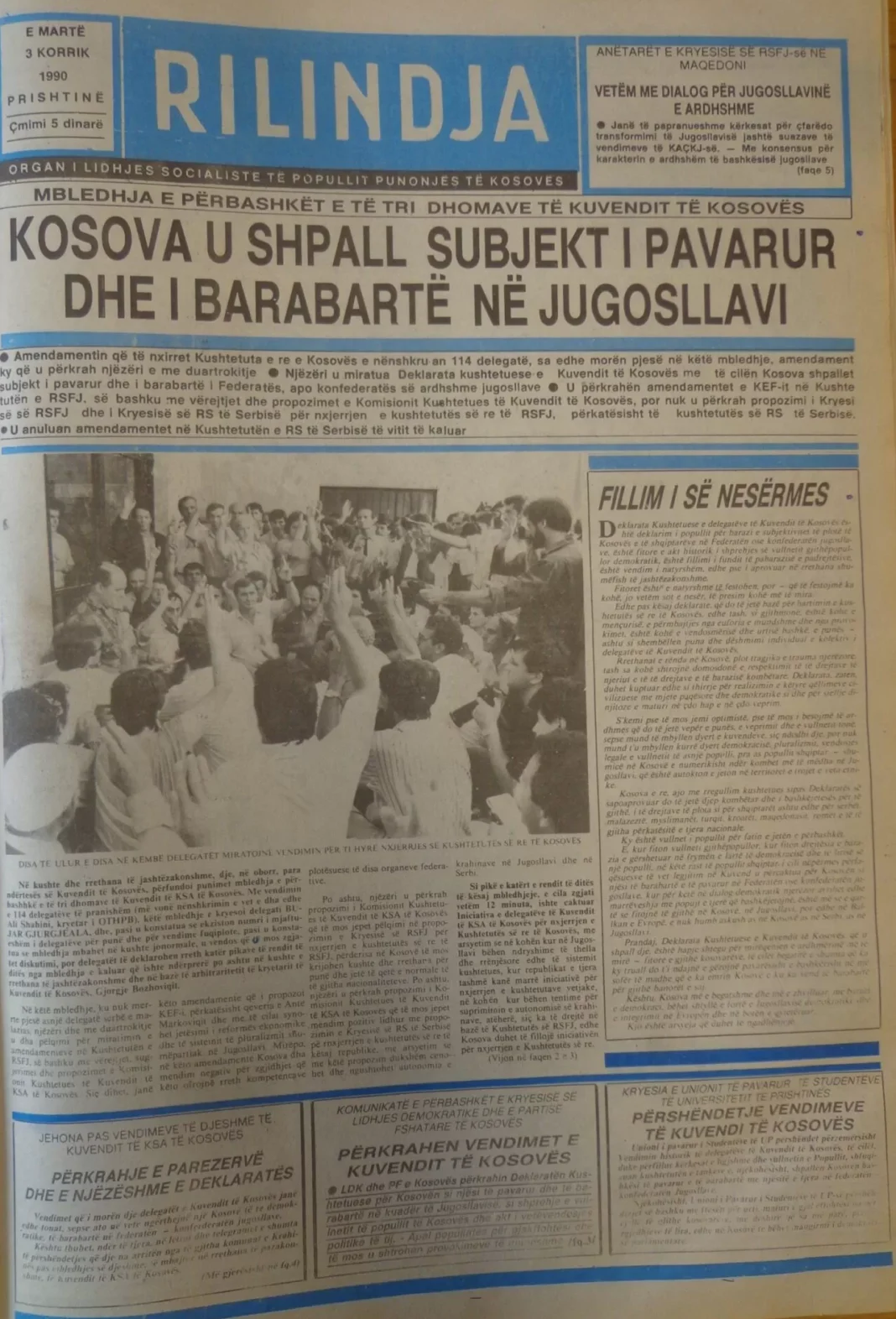 Veproni sikurse delegatët e Kuvendit të Kosovës më 2 Korrik 1990