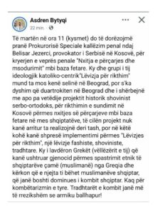 Së fundmi, avokati Asdren Bytyçit, duke dalë haptazi jashtë rolit profesional të avokatit, ka zgjedhur të përdorë institucionet e drejtësisë jo për mbrojtjen e ligjit, por si instrument presioni politik dhe ideologjik kundër intelektualëve shqiptarë që mendojnë ndryshe.