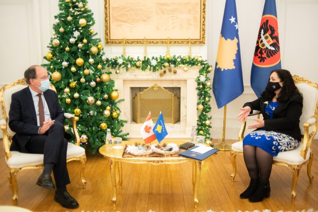 PRISHTINË, 8 Dhjetor 2021/ Presidentja e Republikës së Kosovës, Dr. Vjosa Osmani, ka pritur sot në takim ambasadorin jorezident të Kanadasë në Kosovë, z. Alan Bowman. Ajo ka shprehur mirënjohje për mbështetjen kanadeze për Kosovën që nga viti 1999 dhe ka mirëpritur mundësitë për thellim të bashkëpunimit ndërshtetëror, në veçanti pas takimeve me udhëheqjen e Kanadasë muajin e kaluar.
