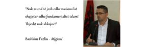 “Feja e vërtetë është dashuria, nderi, dija dhe puna. Ajo që shërben për jetën, jo për frikën,” shton Fazliu.