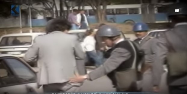 Gazeta “Bujku” 21 Tetor 1996 faqe 1 e 2  (foto nga arkivi i gazetës) dhe gazetari Behlul Jashari në kohë lufte në Kosovë i ndaluar nga forcat serbe në Prishtinë – kontrollohet (pamje nga një xhirim televiziv i asaj kohe)