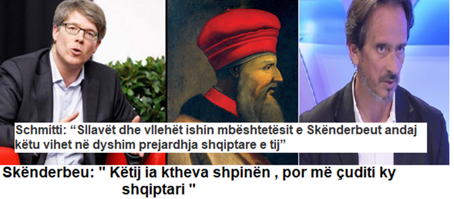 Schmitt: “Sllavët dhe vllehët ishin mbështetësit e Skënderbeut andaj këtu vihet në dyshim prejardhja shqiptare e tij” . A nuk është kjo një katastrofë nga një shqiptar që mburret , paguhet dhe e dezinformon shqiptarinë me një shkrim të tillë?