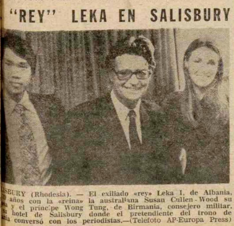 Mbreti Leka — 2.06 m i gjatë — udhëton me një pasaportë të qeverisë shqiptare në mërgim të lëshuar nga vetë ai. Ai e shpalli veten mbret kur babai i tij, Mbreti Zog, vdiq në mërgim në vitin 1961, 22 vjet pas largimit nga Shqipëria, pak para se italianët të merrnin pushtetin. — Sapa-R.