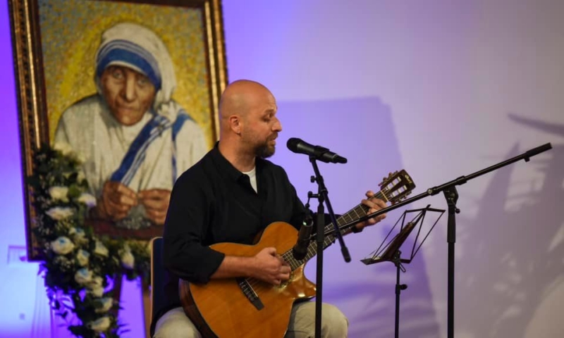 Nënë Tereza ka jetuar si vajzë e re në Shkupin atëhershëm ku ka pasur banda muzikore shqiptare dhe kanë kultivuar këngën e bukur shqiptare. Ajo gjithnjë ka qenë e angazhuar në këto aktivitete kulturore, artistike. Prandaj, edhe një akademi kushtuar asaj nuk mund të mos ketë edhe këtë përmasë të këngës së bukur shqiptare për ta kujtuar një kulturë të kultivuar në qytetin e saj të lindjes. Kështu, kënga “Kroi i fshatit tim”, u këngua me shumë art nga sopranoja Arta Jashari, e shoqëruar nga tingujt e pianos e luajtur nga Pranvera Hoxha. E për të plotësuar këtë pjesë muzikore, ishte Genc Krasniqi, mjeshtri i kitarës, i cili e këndoi këngën “Kaçurrela”.