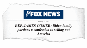 Në një artikull të botuar në Fox News, Kryetari i Komitetit të Mbikëqyrjes dhe Reformës Qeveritare të Dhomës së Përfaqësuesve, James Comer (R-Ky.), përshkruan se si faljet e Familjes së Krimit Biden nga Presidenti Joe Biden shërbejnë si një rrëfim i korrupsionit të tyre, ndërsa ata shitën popullin amerikan për t’u pasuruar.