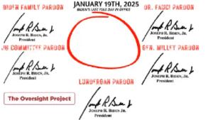 Ish-Presidenti Joe Biden ose më saktë njerëzit rreth tij për përfitime financiare, gjithashtu më 19 janar 2025, “përdori” (ose pëdoren) autopen, për të nënshkruar një falje për anëtarët e Kongresit që shërbyen në Komitetin e Përzgjedhur të Dhomës së Përfaqësuesve, për të hetuar trazirat e 6 janarit 2021, në Kapitolin e Shteteve të Bashkuara.