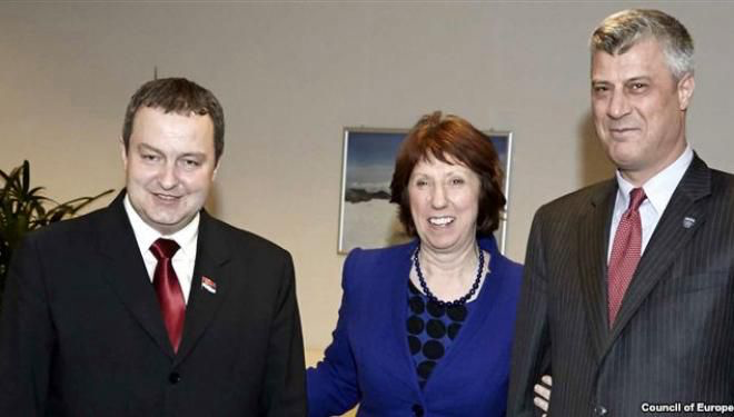 *) Marrëveshja e Brukselit u nënshkrua në 19 prill 2013 nga kryeministrat e Kosovës dhe Serbisë, Hashim Thaçi dhe Ivica Daçiq, respektivisht. Në tekstin e marrëveshjes, u parashtruan disa pika, përfshirë krijimin e një Asociacioni/Bashkësie me shumicë serbe në Kosovë, krijimin e një forcë policore të quajtur Policia e Kosovës, dhe integrimin e sistemit të drejtësisë në kornizën ligjore të Kosovës