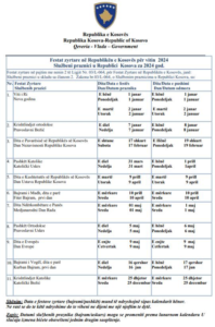 *) Festat zyrtare në Republikën e Kosovës për vitin 2024