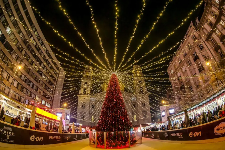 Me dekorime vezulluese, një pemë të bukur Krishtlindjesh, shesh patinazhi, karusel, kasolle druri dhe skena për muzikë dhe evente, ofron një atmosferë festive dhe të veçantë.
