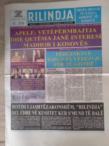 Prandaj, “Rilindja”, që është histori e Kosovës qe 60 vjet, del edhe në kushtet kur nuk mund të dalë, botim i jashtëzakonshëm për ngjarjet e fundit në Kosovë. Ky numër u përgatit me llaptopë personalë, në mungesë të mjeteve për punë, e në shtëpi – në mungesë të lokaleve të punës, në një situatë të jashtëzakonshme, për të cilën opinioni është i njoftuar.