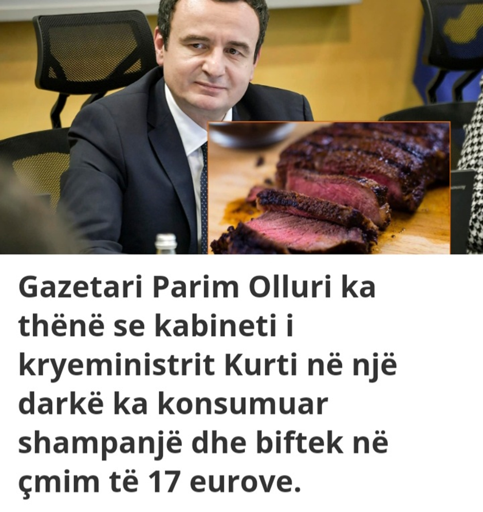 “Kabineti i Kurtit paska pirë shampanjë dhe paskan hangër biftek të 17 eurove.! – paske thënë ti o Parim Olluri.