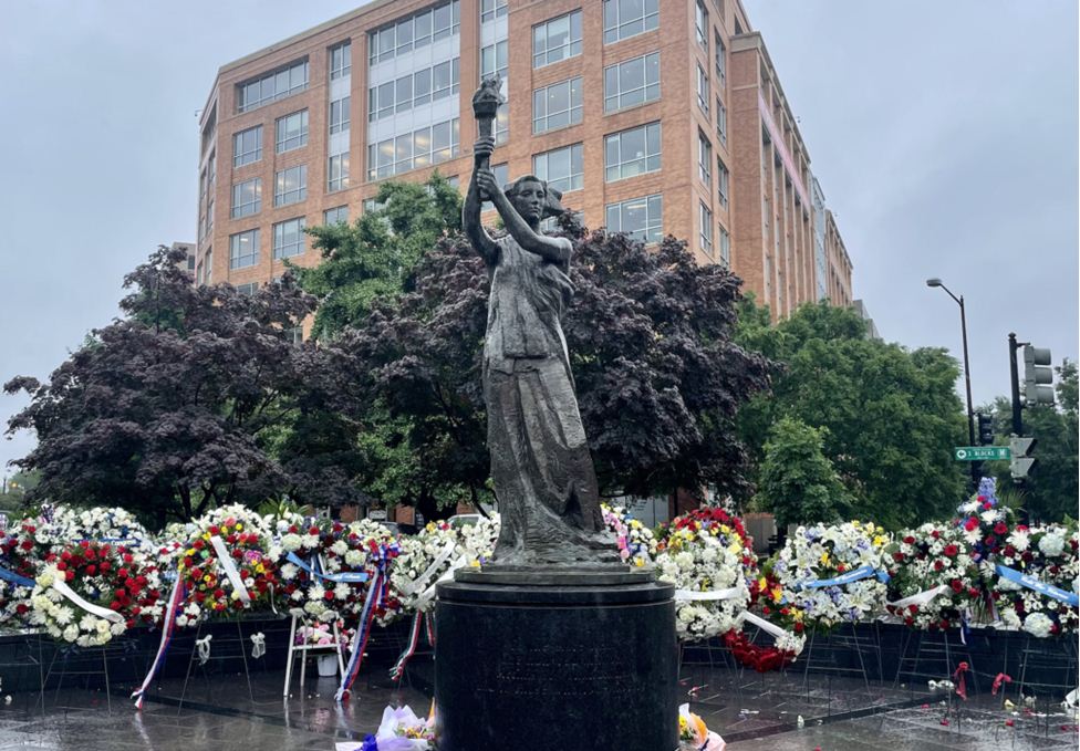 Kurorat me lule nga Ambasada e Republikës së Kosovës dhe Republikës së Shqipërisë, të vendosura rreth Monumentit Përkujtimor të Viktimave të Komunizmit në Washington të Shteteve të Bashkuara të Amerikës, një vend ku nuk ka sunduar kurrë komunizmi – ndërkohë që në Shqipëri dhe në Kosovë ku regjimet komuniste të Enver/Titos, shkaktuan mijëra viktima të pafajshme – vetëm e vetëm se konsideroheshin kundërshtarë të regjimeve të tyre, ndër më të egrit në botë.