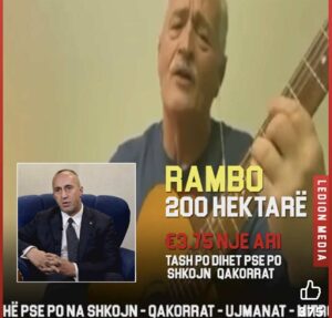 Rah Haradinaj – “Rambo i Çakorrit” Dyqind hektarë për “trima me shpata”, por kufijtë mbetën si plagë pa data! Çakorri po qan, e kufiri s’dihet, kur “Rambo” nënshkruan – populli zihet! Kor: Ikni hëjna bre… hejjj! Çakorri s’falet kurrë! Ikni hëjna bre… hejjj! kufiri s’shitet për burrë! ⸻ ![]()