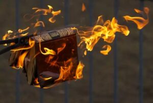 Protesta të muslimanëve të botës në Gøteborg të Suedisë, pas kalljes së Kuranit nga një danez…Nuk është mirë të kallet asnjë libër si Kurani, Bibla apo Don Kishoti i Manqes, por “më mirë është të kallen libra të tillë”, apo libra të tjerë, se sa të asimilohet e shkatërrohet një kulturë e histori e një kombi, për hirë të një religjioni që synon ta krijoj me synime globale-panislamike që do ta krijoi “miletin/umetin” e bazuar në religjionin islam.
