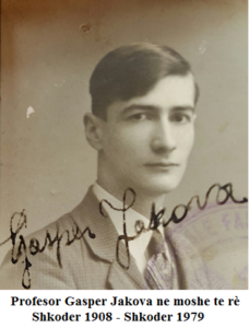 Gasper Jakova, klasat e para të fillores i kreu në shkollen Françeskane e cila siç dihet filloi jeten e saj, në vitin 1861 dhe që per shumë kohë asht drejtue nga poeti ynë kombetar i paharruari At Gjergj Fishta.