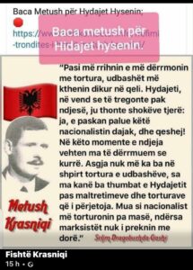 Një shkrim i shpërndarë në formë pllakatë, kinse në emër të Bacës Metush Krasniqi, është një përpjekje e ulët për përçarje kombëtare dhe shpifje ndaj njërit prej bijve më të ndritur të Kosovës – Hydajet Hysenit. Kushdo që e ka stolisur e shpërndarë këtë material me qëllim për të hedhur baltë mbi figura të shenjta të kombit, nuk ia do të mirën as familjes së vet, as trojeve shqiptare, as brezave që po rriten në etje për të vërtetën.