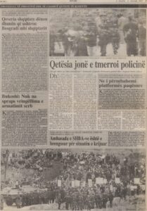 Gazeta raportonte se Presidenti i Kosovës Ibrahim Rugova dënoi ashpër brutalitetin policor mbi protestuesit, se Qeveria shqiptare dënon dhunën që ushtron Beogradi mbi shqiptarët, se Ambasada e SHBA-ve është e brengosur për situatën e krijuar…