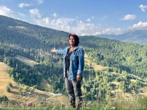 Kjo pra është piktorja, poetja dhe publiçistja Kaltrina Hoti. Fotot janë të bëra prej meje në malsitë e Hotit, më 4 gusht 2025. Kaltrina është ndër gratë më të kulturuara të kohës sonë, që ka sjellë frymë të re në ato anë të lëna vetëm dhe të braktisura të atyre malsive. Kaltrina është një poete që shkruan poezi meditative dhe pikturon të thuash gjithë kohën në «Galeria Hoti», duke jetuar «e humbur» me pikturat e saj që shpesh «i thonë se ke harruar këtë apo atë detaj», qysh më tha, pikturoja.