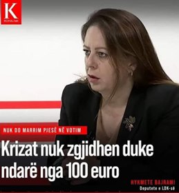 Zonja Hykmete Bajrami! S’e kuptoj këtë emër. Ç’rëndësi ka fakti se ideali yt estetik ose politik brenda kampit tëndë është i kundërt me atë të autorit të dhënjes së 100 eurove. Është një version i sotëm i Hykmetes, një version i përçudnuar i saj. Gjuhen e ka me shumë linçime. Hykmetja është një deputete hiretike e kohës së sotme. Kjo muzik e juaj nuk është më për veshët tanë! Ajo që shqetësonë opinionin publikë në Dardani është korrupsioni dhe krimi i organizuar. Korrupsion do të thotë “shkatërrim, rrënim, alterim, çnatyrim, prishje”. Hiqe maskën, dhe predikoni virtytin e mos lakmo kulltuqet e ministrisë.