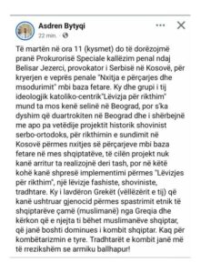 Së fundmi, avokati Asdren Bytyqi, duke dalë haptazi jashtë rolit profesional të avokatit, ka zgjedhur të përdorë institucionet e drejtësisë, jo për mbrojtjen e ligjit, por si instrument presioni politik dhe ideologjik kundër intelektualëve shqiptarë që mendojnë ndryshe.