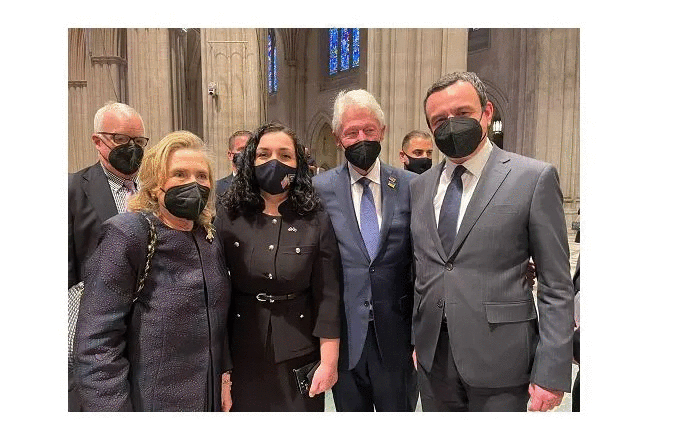 Të ënjtën që kaloi, dy udhëheqsit kryesorë të Republikës së Kosovës, Presidentja, Zonja Vjosa Osmani dhe Kryeministri, Zoti Albin Kurti morën pjesë në varrimin e ish-Sekretares së Shtetit, Madeleine Albright, e cila ndërroi jetë muajin e kaluar — Frank Shkreli: Ndërroi jetë Madeleine Albright – Gruaja që u shpëtoi tiranive fashisto-komuniste | Gazeta Telegraf — Kryeministri i Republikës së Kosovës, z. Albin Kurti, bashkë me Presidenten e Republikës së Kosovës, Znjën Vjosa Osmani dhe me ish presidenten Atifete Jahjaga, morën pjesë në ceremoninë e varrimit të ish-Sekretares së Shtetit të SHBA-së, të ndjerës Madeleine Albright, në Katedralën Kombëtare në Washington. Në kuadër të ceremonisë së varrimit, Presidentja Osmani dhe kryeministri Kurti u përshëndetën dhe folën me këtë rast me një numër personalitetesh politike amerikane, përfshirë ndër të tjerë, Sekretarin aktual të Shtetit, Z. Antony Blinken, ish-Presidentin e Shteteve të Bashkuara, Z. Bill Clinton dhe bashkëshorten e tij, ish-Sekretaren e Shtetit, Znj. Hillary Clinton. Krye-udhëheqsit e Republikës së Kosovës u përshëndetën me këtë rast edhe me ish-Zëvëndës-presidentin e Shteteve të Bashkuara-së, Z. Albert Gore, si dhe me ish-Sekretarët e Shtetit, republikanën, Zonjën Condoleezza Rice në administratën e ish-Presidentit Xhorxh Bush dhe Z. John Kerry, si dhe mikun e madh të shqiptarëve ish-kongresistin Eliot Engel.