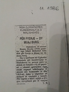 Ramiz Hoxha (1935) punëtor nga fshati Bellanicë, këto ditë për fyerje u dënua me dy muaj burg.
