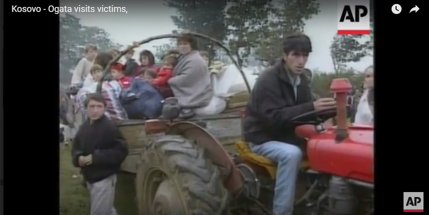 foto: Rugova-Ogata dhe Ogata me refugjatet shqiptare ne Reznik, refugjatet me traktor.