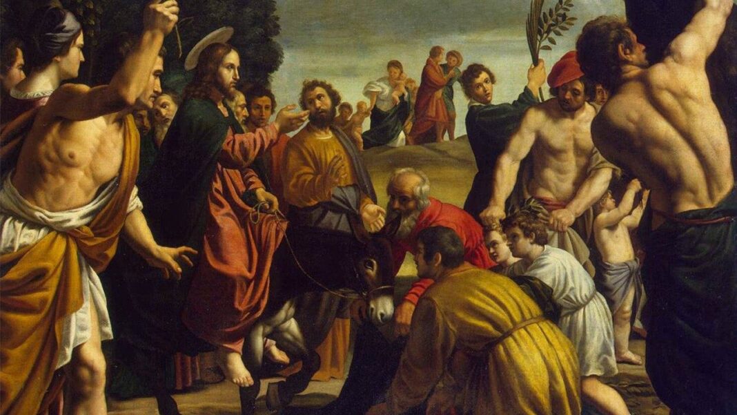 Figura e Krishtit që hyn në Jerusalem, i ulur mbi një gomar, përmbush në mënyrë të drejtpërdrejtë profecinë e Librit të Zakarisë (Zak 9,9), duke e zbuluar Mesinë si Mbret paqeje. Ky simbolizëm mbart një densitet të thellë teologjik: ai përbën një kritikë të qartë ndaj çdo koncepti politik, triumfalist apo ideologjik të mesianizmit dhe e vendos Krishtin në horizontin e një mbretërie eskatologjike, e cila nuk është e kësaj bote (krh. Gjn 18,36), por që vepron brenda saj si farë e shëlbimit.