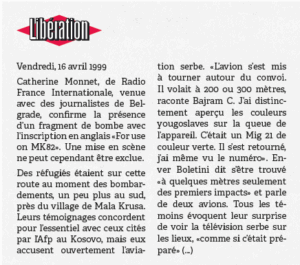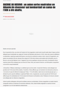 2. Gjashtë ditë përpara se të bombardonin Burgun e Dubravës, aviacioni luftarak serb kreu sulme edhe në territorin e Shqipërisë. Po jo sjell shkrimin e plotë të gazetës franceze “Libération” të datës 13 maj 1999.