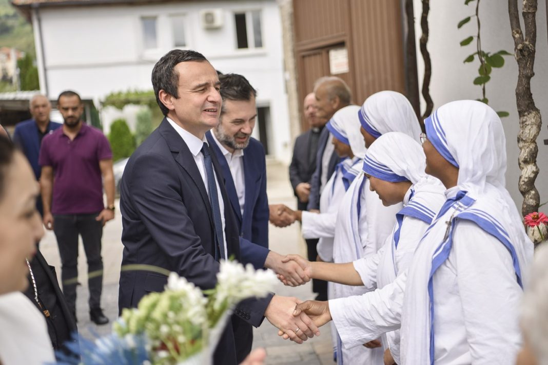 Kryeministri Kurti falënderoi Ipeshkvin Don Lush Gjergji dhe motrat e Nënës Terezë për pritjen.