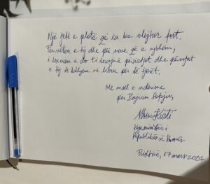 Prishtinë, 17 mars 2024Kryeministri i Republikës së Kosovës, Albin Kurti, sot gjatë ditës vizitoi për ngushëllime familjen e gazetarit dhe shkrimtarit të njohur, Bajram Sefaj, i cili u nda nga jeta të martën e 12 marsit.