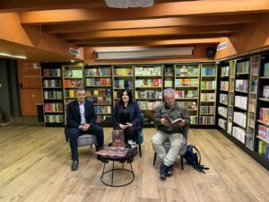 Pamje nga promovimi i mbrëmshëm në Librarinë “Dukagjini” në Prishtinë, ku jam une, Bajram Kabashi, Amina Nuraj dhe Bashkim Pushkolli.