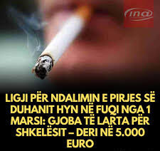 Sipas INA-s së Shkupit të para disa viteve, gjobat për lejimin apo pirjen e duhanit në lokalet e mbyllura, ishin deri në 5 mijë auro. Mirëpo në Kosovë , para disa vitesh një ndër deputetët kryesor të AAK-ës, “i nervozuar” pinte duhen hapur në Parlament…! Prandaj, kur deputeti apo deputetët se respektjnë ligjin, nuk ke se si të presësh mbarësi e respektim ligji prej të tjerëve…?!
