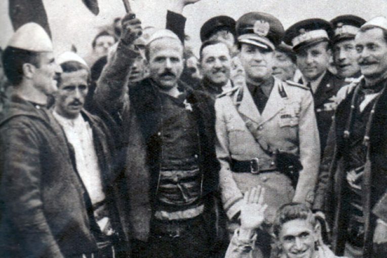 I gjithe sheshi ishte mbushe me njerez. Burra dhe gra të veshun me kostumet e bukura shqiptare. me flamuj te Shqipnise e Italisë.