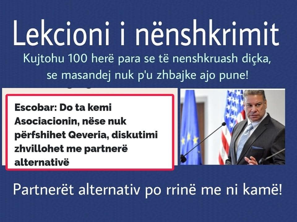 Gjasat janë se “filozofi” Eskobar duhet të jetë rekrutuar me kohë në radhët e sorosistëve, për vënien në jetë të strategjisë së djallëzuar afatgjatë për ftohjen e shqiptarëve me Shtetet e Bashkuara të Amerikës.