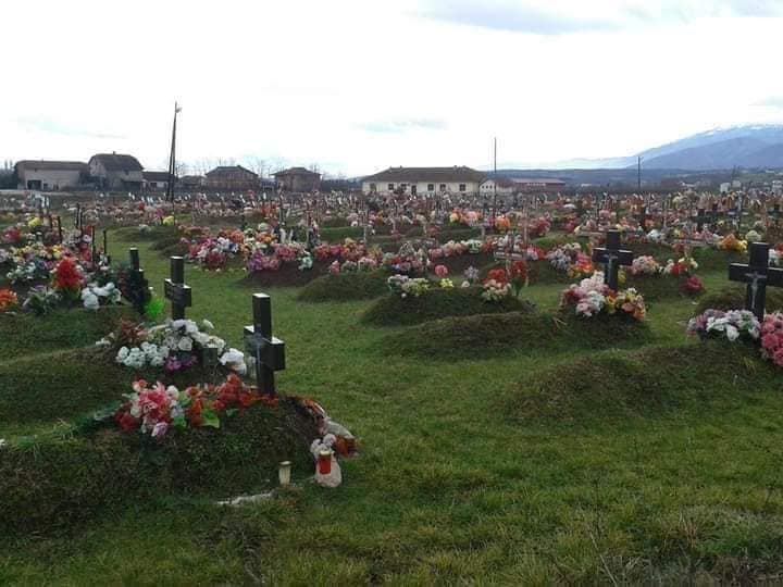 Varrezat e viktimave të masakrës në Meje .