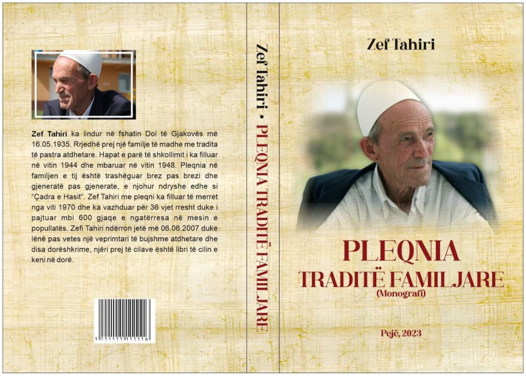 Autori i kësaj monografie, Zef Tahiri rrjedhë prej një familje të madhe me tradita të pastra kombëtare. Familja e Zefit përveqse për mikëpritje, bujari dhe atdhedashuri, është e njohur edhe si familje pleqnare. Pleqnia në familjen e tij është trashëguar brez pas brezi dhe gjeneratë pas gjenerate, e njohur ndryshe edhe si familje bajraktare e fisit të Kuzhninit.