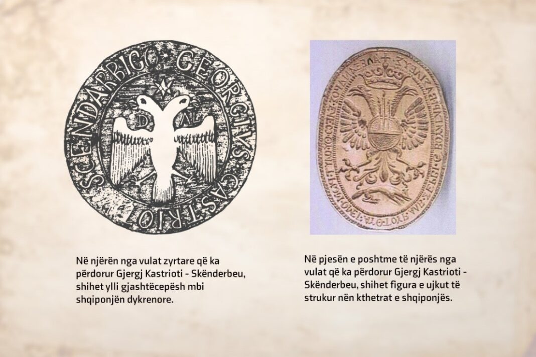 Fatkeqësisht Gjergj Kastrioti-Skënderbeu nuk ka lënë ndonjë sqarim a porosi për Dritan Goxhajn, për arsyet e vendosjes së yllit me gjashtë cepa në njërën vulë dhe ujkun nën kthetrat e shqiponjës në vulën tjetër! Kjo do t’i kishte mundësuar “shokut” Dritan t’i jepte përgjigje fëmijës së tij 7-vjeçar” për këto çështje. Sa për arbëreshët, nuk kemi përse të brengosemi: ata e bartën në shpirt figurën e Heroit tonë Kombëtar dhe ua përcollën brez pas brezi edhe shqiptarëve të trojeve të tjera etnike.