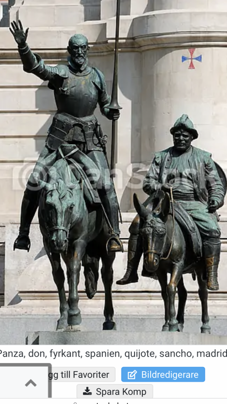 Don Kishotit dhe Sanço Panço (barkëmadhi), të ngrirë në statujë