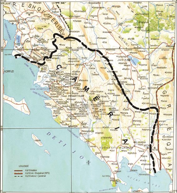 Përcaktimi i kufijve të Shqipërisë, i ndërprerë me 1913 nga Lufta e I-rë Botërore, rinisur më 1919, la jashtë territorit rajone të banuara nga shqiptarë, Çamërinë dhe Kosturin. Traktati i Lozanës nënshkruar me 1923, parashikonte shkëmbimin e popullsive greke dhe turke, për të zgjidhur kështu një problem të dy vendeve. Tragjikisht Greqia konsideroi si myslimanë turq banorët e Çamërisë dhe mbi 30,000 çam u shpërngulën me forcë. Një pjesë e tyre preferuan Shqipërinë.