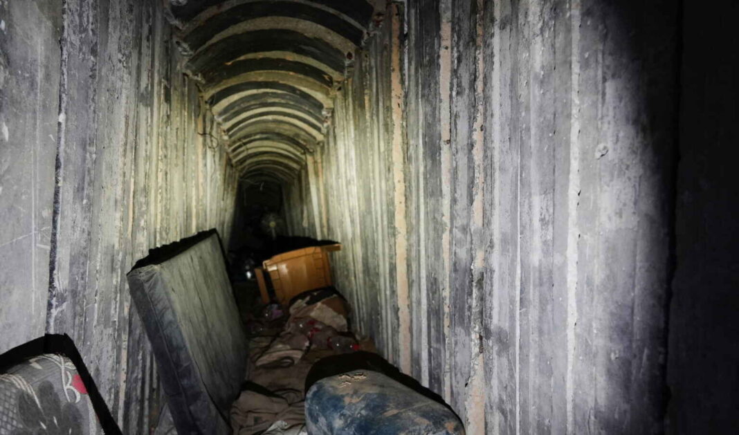 Dyshekë dhe një karrige plastike shtrihen në tokë brenda një tuneli në Rafah në Rripin e Gazës më 8 dhjetor 2025. Foto: Sam Mednick / AP / NTB.