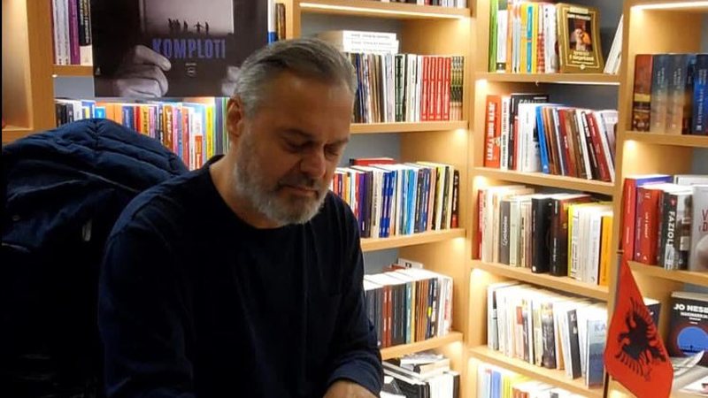 Kalova Prizrenin. Më ndalojnë prapë. Policia e Kosovës. Kishin radar. Isha me 129 km në orë. Lejohej 110. Polici afrohet. Hapa xhamin. Më kërkoi patentën. (…) U kthye te unë. Më tha. Më jep një libër. (…) Mora dy libra. Romanin “KOMPLOTI”. Nënshkrova dy autografe.”