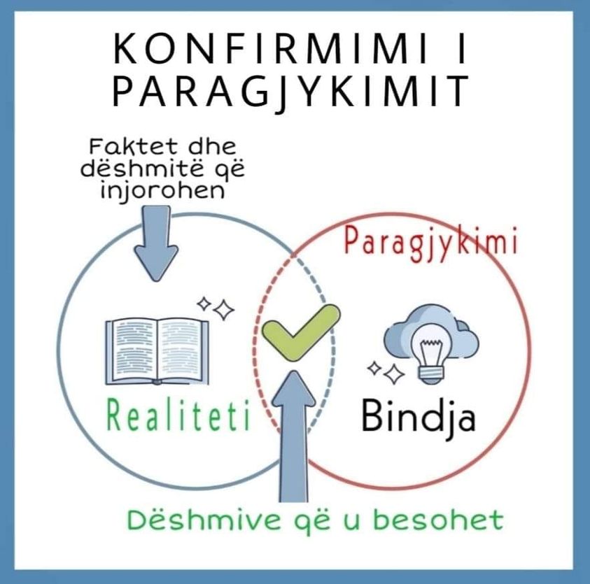 Mendimet ishin të ndara mes grupit të studentëve, disa ishin KUNDËR dhe disa PËR dënimin me vdekje. Mëpastaj iu ndanë disa libra si literaturë rreth kësaj teme, të cilën duhej ta studjonin. Pasi i kishin studjuar literaturën, u bënë të njejtat pyetje. Për habi ata që kishin qenë kundër tani ishin edhe më të vendosur. I njejti efekt erdhi në shprehje edhe tek nëngrupi tjetër, ata që ishin pro dënimit me vdekje, tani ishin edhe më të vendosur. Si ishte e mundur nga e njëjta literaturë studentët të arrinin në dy përfundime diametralisht të ndryshme? Kjo ndodhi sepse studentët e kishin bindjen apo paragjykimin të formuluar më herët dhe ata muarën për bazë vetëm faktet dhe dëshmitë që konfirmonin qëndrimet e tyre¹. Ky fenomen njihet si “confirmation bias” apo si konfirmim i paragjykimit. Kur dikush ka një bindje në formë paragjykimi, është shumë e vështirë të luhatet, sepse ai mbahet fuqishëm vetëm për faktet dhe dëshmit që shkojnë në favor të paragjykimit të tij, kurse faktet që bijn ndesh me bindjen e tij paragjykuese i lëshon lehtas nën tavolinë, dmth. nuk i përfillë fare.