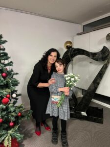 Në fund të takimit zonjës Shukrije Ramadani, tufë lulesh i ka dhuruar çupëza e vogël Elisa Maliqi, mbesë e shkrimtares dhe publicistës së ndjerë Miradije Kurtishi – Maliqi.
