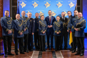 Në anën tjetër, Ansambli Frymor i Forcave të Sigurisë së Kosovës drejtuar nga Togeri Shkumbin Bajraktari, në dirigjimin e Tetares Lirjona Sylejmani dhe pjesëtarëve të tjerë të Ansamblit: Betim Krasniqi, Patris Berisha, Kaltrina Krasniqi, Dardan Gjinolli, Avni Krasniqi, Besim Behluli dhe Rejhana Rexha. Derisa hynin të ftuarit në sallën qendrore i pritnin me muzikën e pastër shqipe duke ekzekutuar disa nga perlat e këngëve tona të bukura, si: “Hapi sytë e zi”, “ Pranvera në Prishtinë”, “O moj ti me sytë e zi” e shumë këngë dhe melodi internacionale që mysafirët të ndihen si në shtëpitë e tyre.