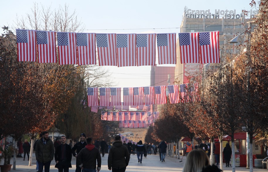 Flamuri amerikan, i shtetit më të fuqishëm në botë, vendit mik, dashamirës e përkrahës të shqiptarëve, prej dje valon në kryeqytetin e Kosovës, Prishtinë, i ngritur lart e solemnisht në selinë e Zyrës së USIA-s, në një godinë të bukur të lagjes së Dragodanit, duke sjellë mesazhet më të mira të aspiratave të zgjidhjes e të paqes për Kosovën e rajonin.